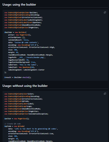 Endroid QR Code is a PHP library that allows developers to generate QR codes with customizable parameters. It supports creating QR codes in various formats, including PNG and SVG, and offers options for encoding URLs, text, or other data. The library is flexible and easy to integrate into applications that require QR code generation, such as ticketing systems or payment gateways.