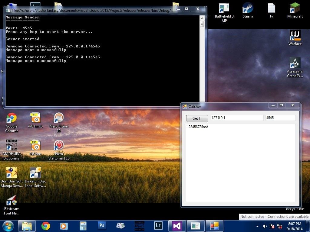 Simply, this is the client. type the ip and port that server pc's. "Get it" button will get the message for you from the server's pc.