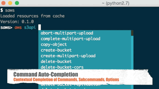 Although the AWS CLI is a great resource to manage your AWS-powered services, it's tough to remember the usage of 70+ top-level commands, 2000+ subcommand, countless command-specific options, and resources such as instance tags and buckets. SAWS aims to supercharge the AWS CLI with features focusing on improving ease-of-use, and increasing productivity. Under the hood, SAWS is powered by the AWS CLI and supports the same commands and command structure. In addition to the default commands, subcommands, and options the AWS CLI provides, SAWS supports auto-completion of your AWS resources. Currently, bucket names, instance ids, and instance tags are included, with additional support for more resources under development. Sometimes you're not quite sure what specific command/subcommand/option combination you need to use. In such cases, browsing through several combinations with the help command line is cumbersome versus browsing the online AWS CLI docs through a web browser.